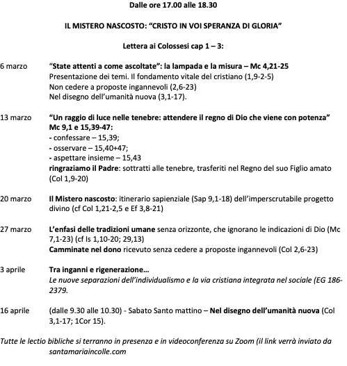 Quaresima 2022 – Lectio bibliche domenicali su 22 febbraio 2022 da santamariaincollein Senza categoria